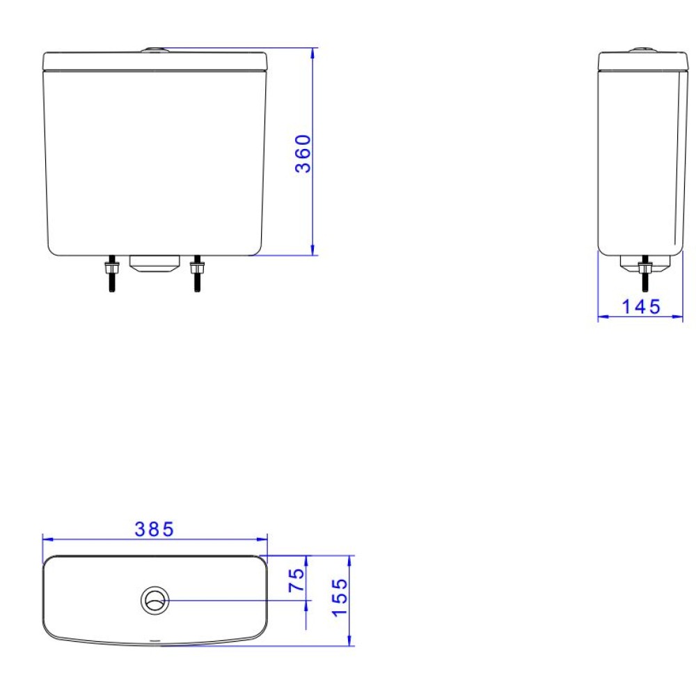 Comprimento: 385 mm| Largura: 155 mm| Altura: 360 mm.