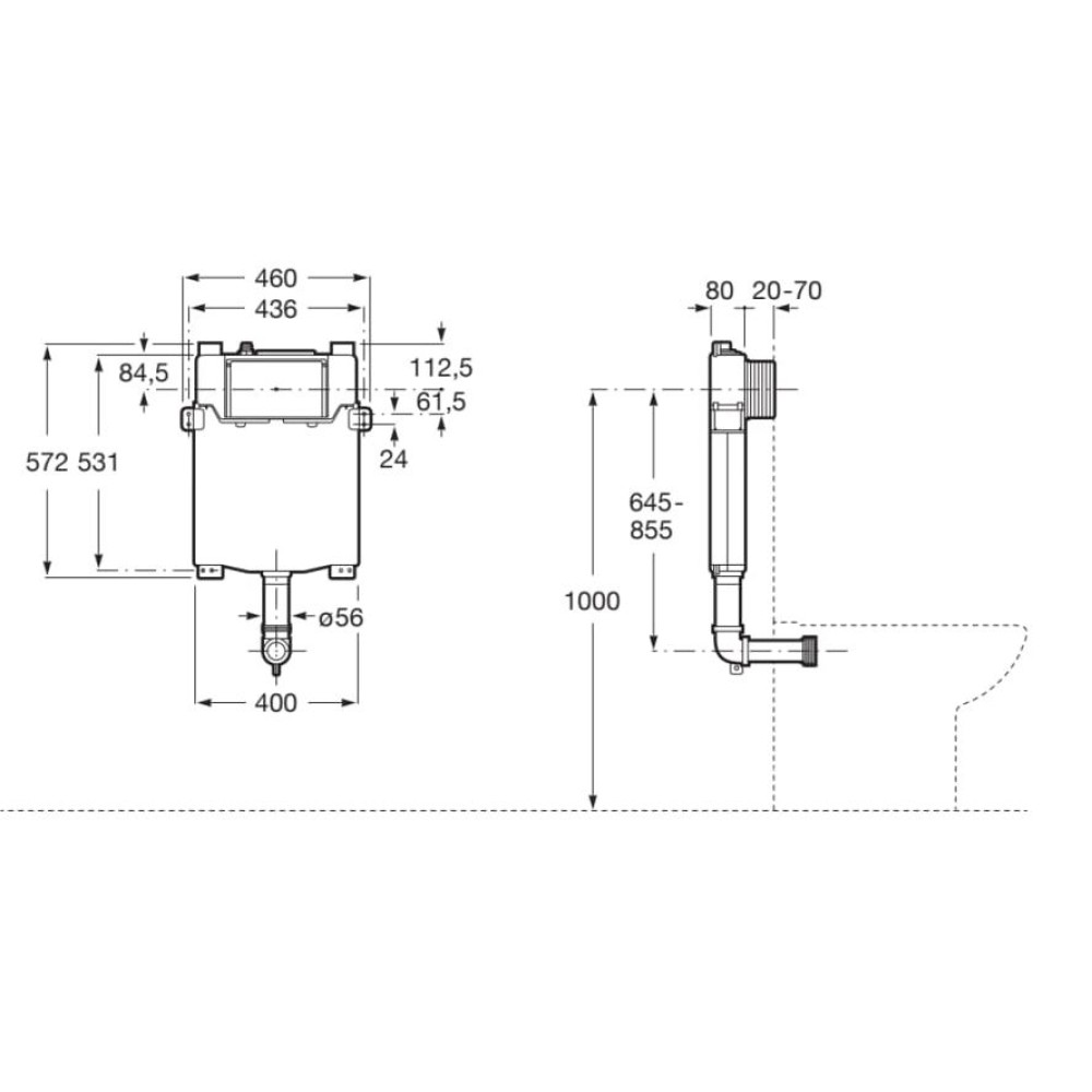 Caixa embutida com dupla descarga para bacia convencional