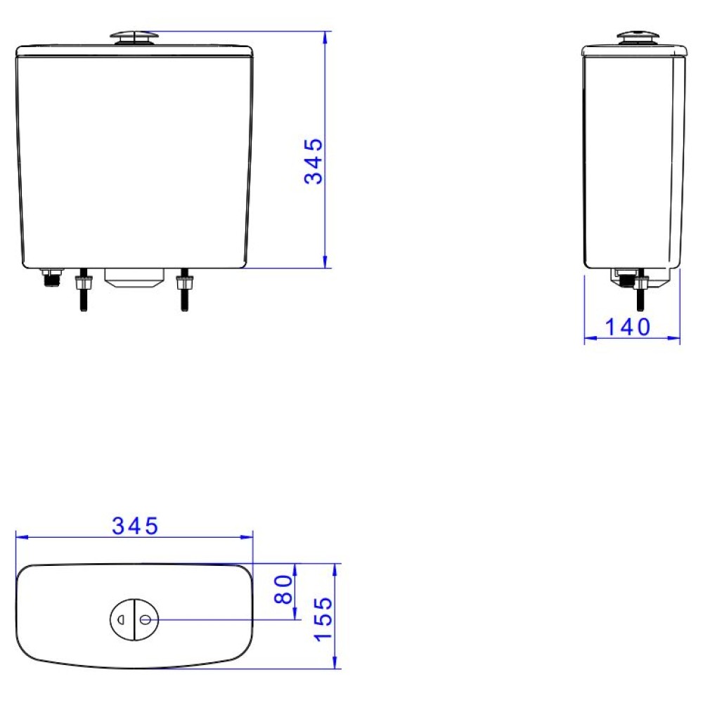 Comprimento: 345 mm| Largura: 155 mm| Altura: 345 mm.