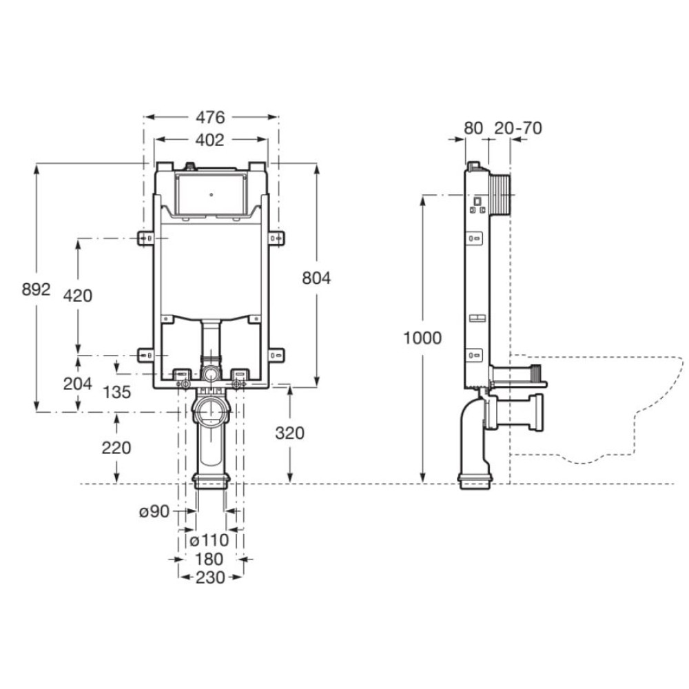 Caixa embutida Roca com dupla descarga para bacia suspensa alvenaria B890070120