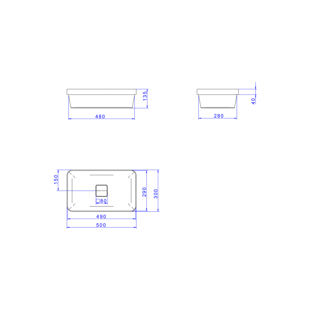 Cuba de Sobrepor Retangular 50cm Soft Antracite Deca Slim L.23050.85